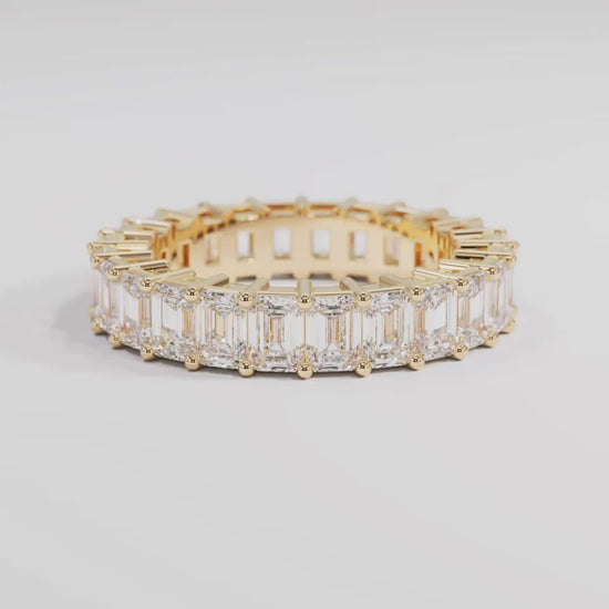18kt gold eternity band set with 4.00ct of emerald-cut diamonds, G color, VS clarity. Available in white, yellow, or rose gold. A timeless design, unique to our atelier, crafted to order